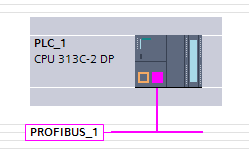 將變頻器 FC300 拖動(dòng)到 PROFIBUS_1 連接線處后,PLC 和變頻器連接在一起,F(xiàn)C300 顯 示為未分配。