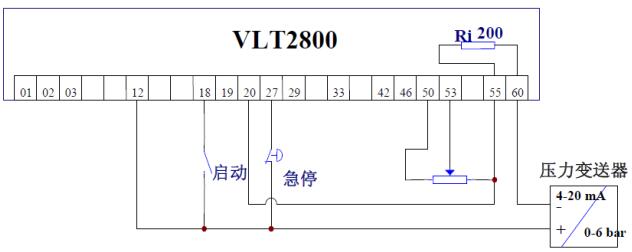 圖二、VLT2800 變頻器閉環過程控制典型接線圖