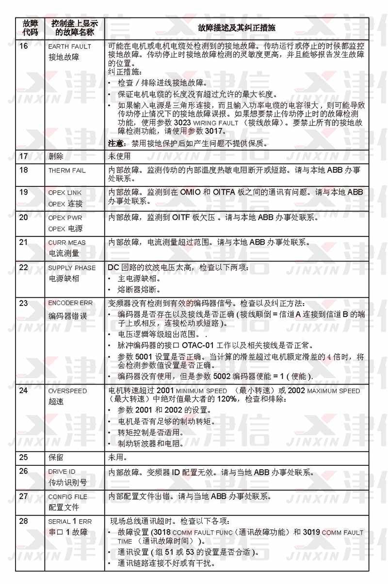 三、ABB ACS550 故障代碼F0016,17,18,19,20,21,22,23,24,25,26,27,28