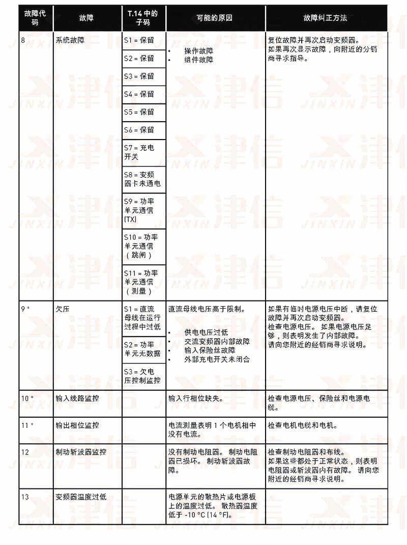 二、偉肯NX變頻器故障代碼FT8,9,10,11,12,13