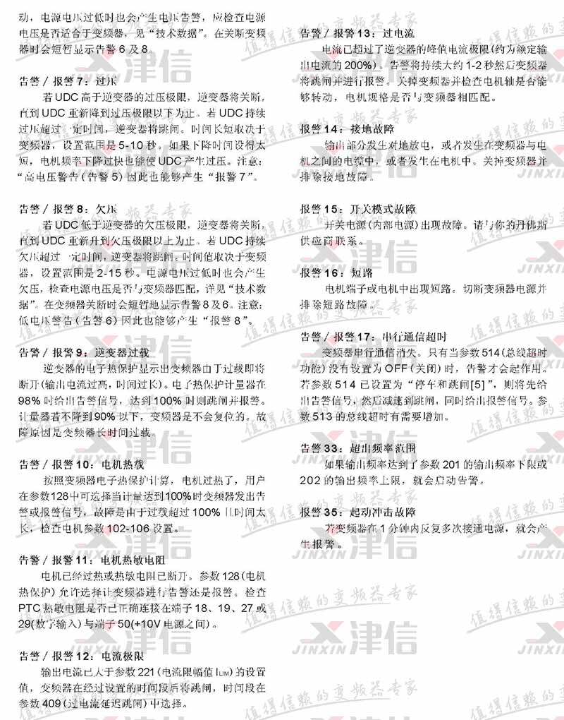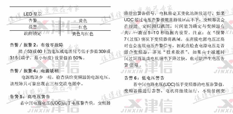 故障代碼 故障描述 警告 報警 跳閘鎖定