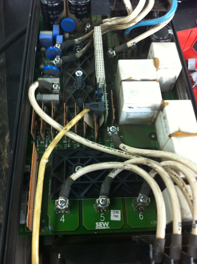 由于變頻器使用的場合比較特殊,并且該機器配備同步控制功能,客戶對于該機器保養很好,機器內部比較干凈。因此該機器發生故障肯定是由于器件本身損壞導致。