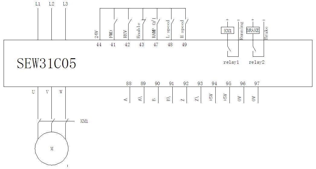 堆垛機是整個自動化立體倉庫的核心設備,通過手動操作、半自動操作或全自動操作實現把貨物從一處搬運到另一處。它由機架(上橫梁、下橫梁、立柱)、水平行走機構、提升機構、載貨臺、貨叉及電氣控制系統構成。其原有的提升機構是通過SEW變頻器驅動的,由于SEW變頻器損壞,無法修復,客戶急需生產,所以用丹佛斯FC302系列變頻器進行替代。