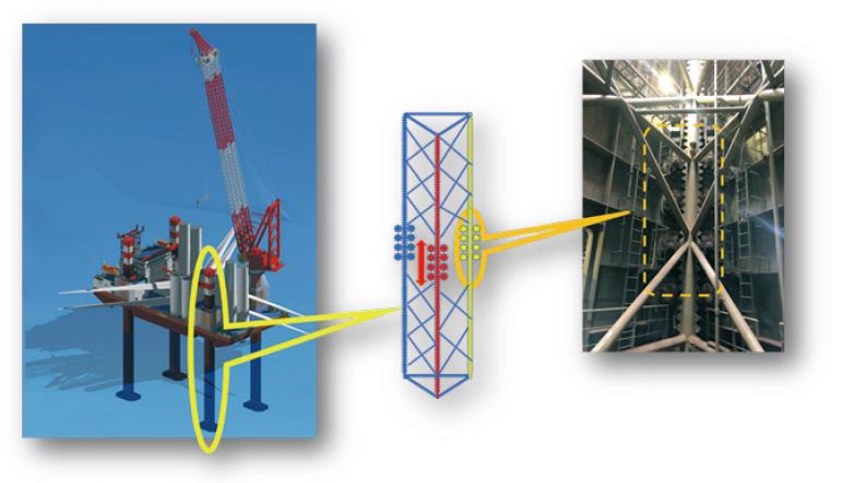 平臺的關鍵配置為變頻動齒輪齒條升降系統,整個平臺共有4個樁腿,可以自由上下升降,并且需要根據實際工況隨時調節三邊鋼結構舷的應力。整個平臺的重量都承受在4個樁腿上,因此對于啟動時候的電機力矩有很高的要求。因此公司采用Danfoss VACON® NXPCommon DC Bus System系列共直流母線驅動產品作為抬升系統的電氣驅動使用。