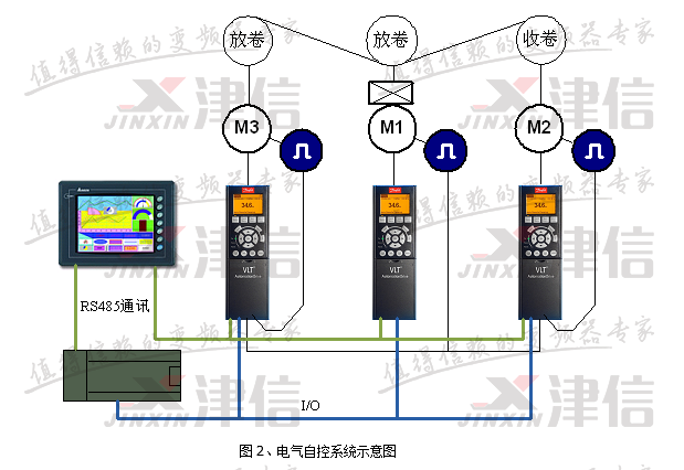 M3為放卷輥,中心卷繞,直徑逐步變小,由一臺FC302驅動,提供放卷張力。